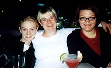 Ren, Kristina, me. The creepy looks on Ren and Kristina are due to the fact that they are nearly incapable of keeping their eyes open during a photo. So they had to open them very widely and hope for the best. This picture took about four tries. Sigh. And my glasses are doing some weird reflection that makes my eyes look weird. Hmmm.