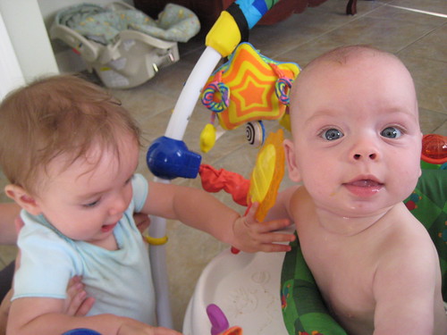 Later, Chloe let Linus play in her Jumperoo, sweet girl: