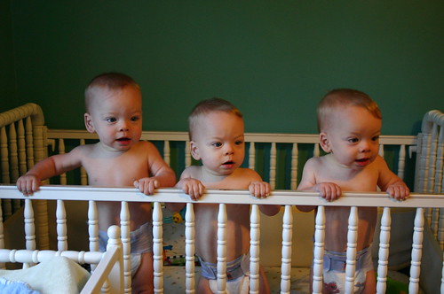 hi, i am an occasional lurker with a singleton born the same week as your boys and thought i’d leave a comment just to say hi. oh and i am not surprised the boys have been “discovered” … i mean they are identical triplets?!? that is just too cool. oh, and they’re identically adorable. you should start pimping them out all over! earn those college funds now 😉