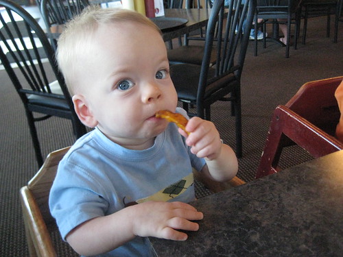 Mary and I took the boys to lunch. They were very good, eating their sweet potato fries and flirting with a two year old girl who would run her fingers through her hair whenever you praised her flaxen locks.