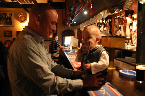 After the boys and I left Baton Rouge, we stopped by the pub for our neighborhood Thanksgiving feast. Linus ate all the coasters: