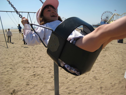 Went to the beach! Linus did not enjoy the water nor the sand, but did like the swings.