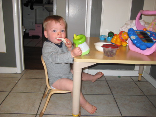 Went back to their house, went to Trader Joe’s (why why why don’t they have them here? Hmmph.) and Evan cooked dinner. Linus likes slurping spaghetti noodles. There was much playing going on.