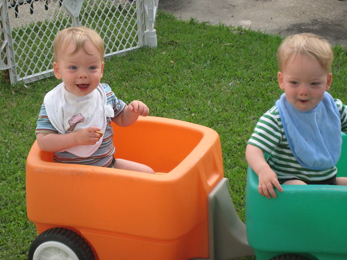 – Linus has been throwing full-on temper tantrums. It’s kind of funny, but I know it won’t be for long. I think it’s time to investigate some books on toddler discipline. I’ve heard good things (from other triplet moms) about Love & Logic and 1,2,3 Magic. We’ll see.