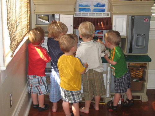 Then, we went to my friend Mary’s, where there were three other little boys for them to play with. Mary’s son Fletcher and Hadley’s twins George and Gavin. The other boys are about 14 months older than my boys, but they still sorta played together.