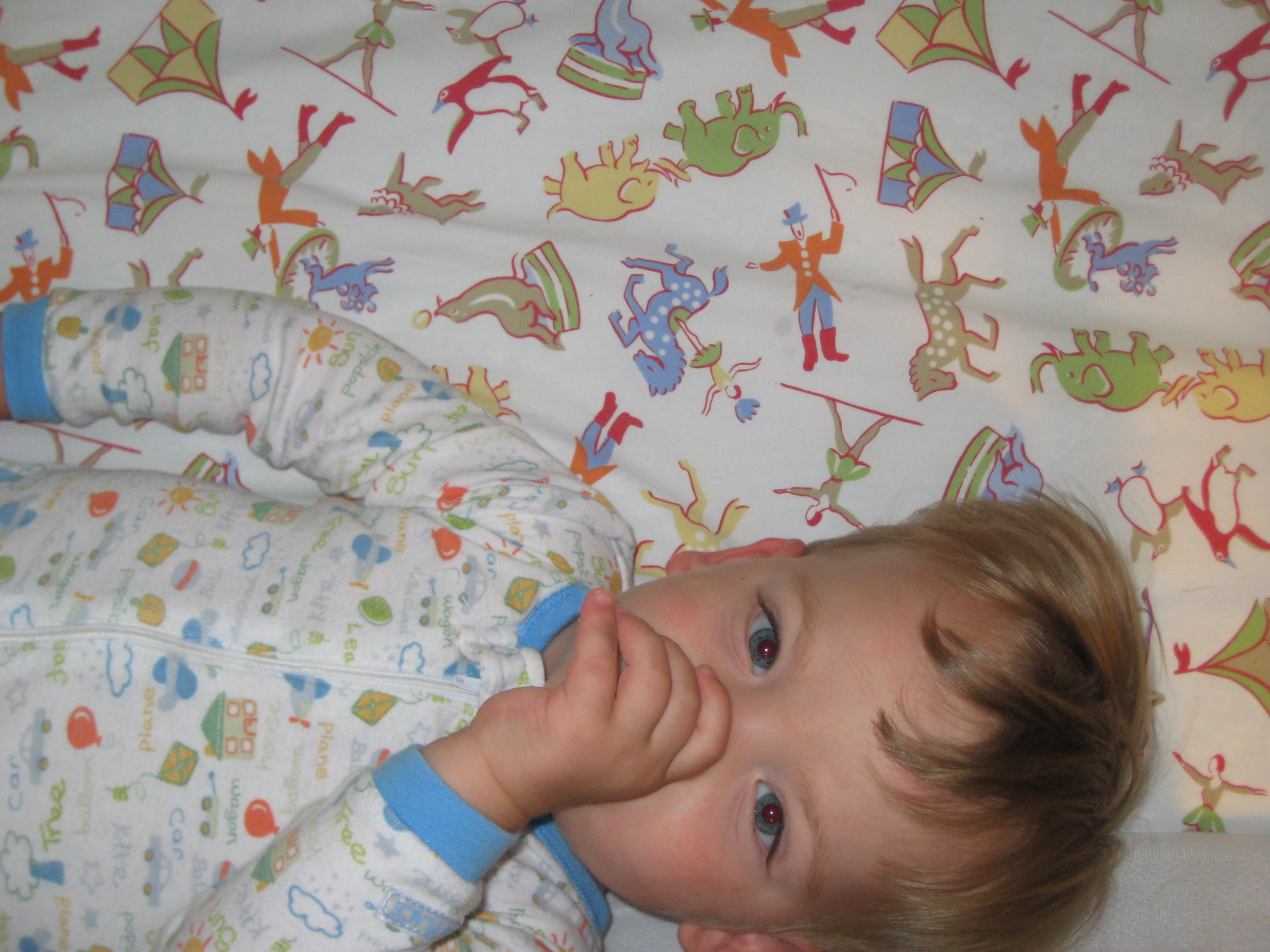 Oliver looking cute in his crib.