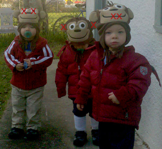So a few weeks ago, I saw these adorable monkey hats at the Children’s Place and I had to have them. I didn’t buy them, though. Last year I bought them hats a few sizes bigger than they needed so they could wear them this year too, but MAN, these hats are adorable…