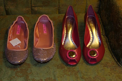 Dreamy pink sequined ballet flats (from Payless!) and hot pink patent leather heels from BCBGirls via eBay. And both pairs are comfortable.