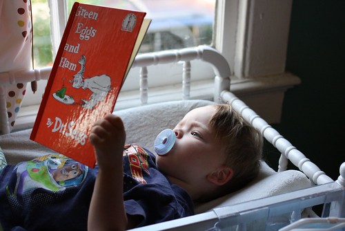 And when I went to get the boys from daycare this afternoon, their teacher said Miles has been reciting this all day. “Not in a house! Not with a fox!” etc, etc.