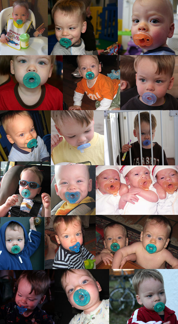 Good luck, Pam! I only have a thumb sucker (Kendyll) and I’m sooo not looking forward to breaking that habit someday (considering I sucked my thumb for waaaaaay too long when I was young). May the force be with you & George!