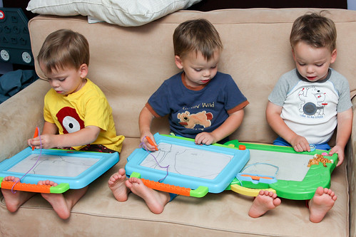 I bet you don’t remember me asking do you think any of your boys will be left-handed. And now? Do you think? I’m just interested because I’m left-handed, too 😀 I’ve seen some pics before where Oliver or Miles (these are the two who I can barely tell apart) uses his left hand more. But anyway.. I love these little men and all of your photos of them!
