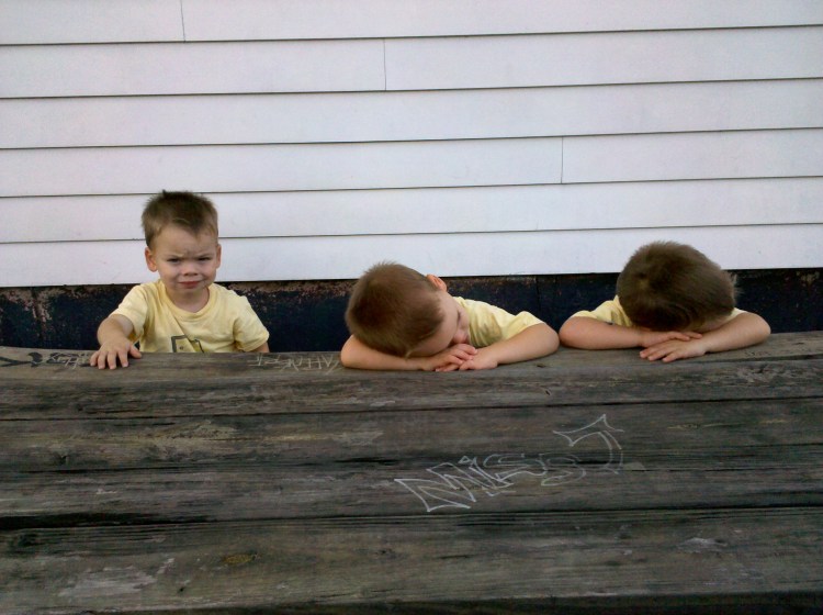 The boys were napping in the car, and they woke up when I was parked outside the pub, waiting for George to bring me a diet coke. We got the boys up, but I don’t think they were *quite* awake yet.