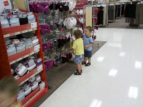 09/21/10 09/21/10, originally uploaded by pyjammy. Took the boys to Target today, and when we passed the lingerie department, the boys said, “LOOK MOMMY! GLASSES!” Yes, sons, those brassieres would make excellent glasses. Share this:Share on TumblrLike Loading... Related