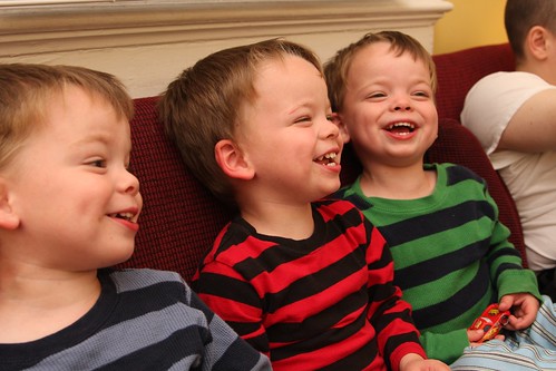 This picture of the boys all giggling together represents a very common occurance in our life. I love it!