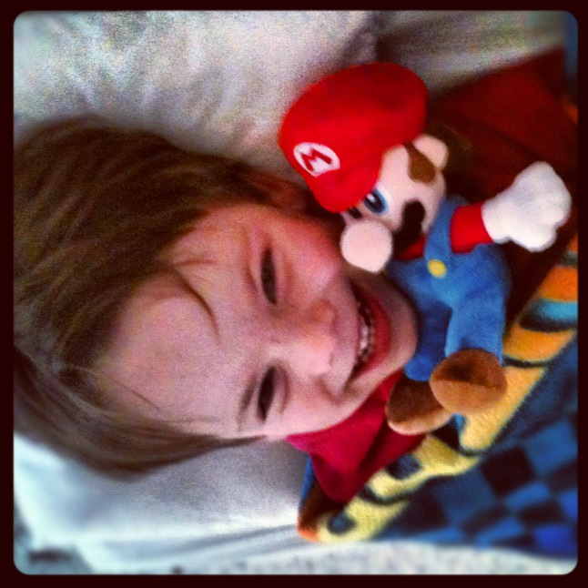 12/05/12 Confession: I didn’t take this picture, one of Miles’s teachers did. Apparently, he insisted she take a photo of him and Mario before they took a nap. (Well, before Miles napped. I’m not sure how Mario can nap with those giant eyes wide open.) Share this:Share on TumblrLike Loading... Related