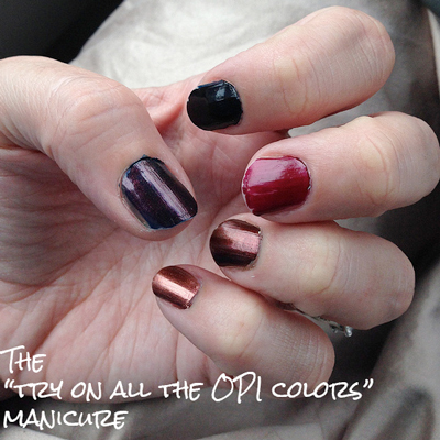 I call it the “run to Ulta on your lunchbreak to return the pink and blue sparkly nail polish that your 5 year old son picked out, but that you wouldn’t even wear on your toes in the winter” manicure.