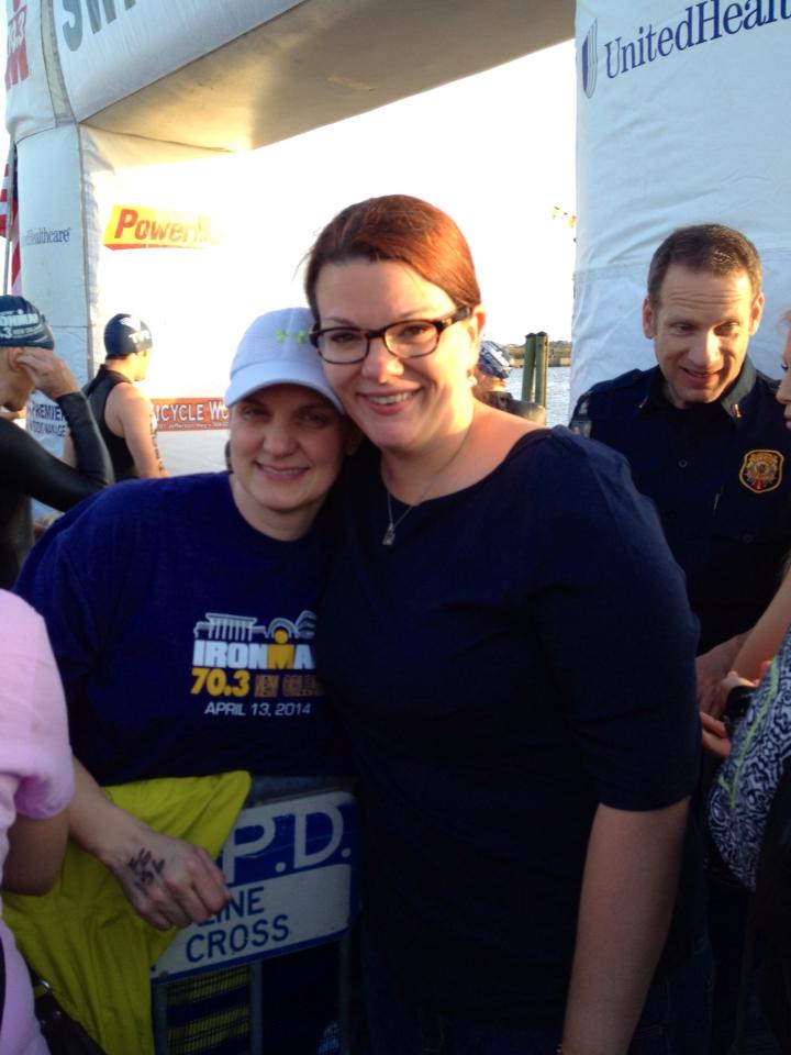 Just before the race, Kim was asked to say a few words about her husband and the triathlete community that he was a part of. I felt a little shy to be there, so it’s good that another triplet mom who had driven in from Mississippi spotted me and brought me over to give Kim a big hug. Even though we’d never met in person, I’ve known her as long as I’ve had triplets (her girls are 7) and it was not a “nice to meet you” hug, but a “nice to see you” one.