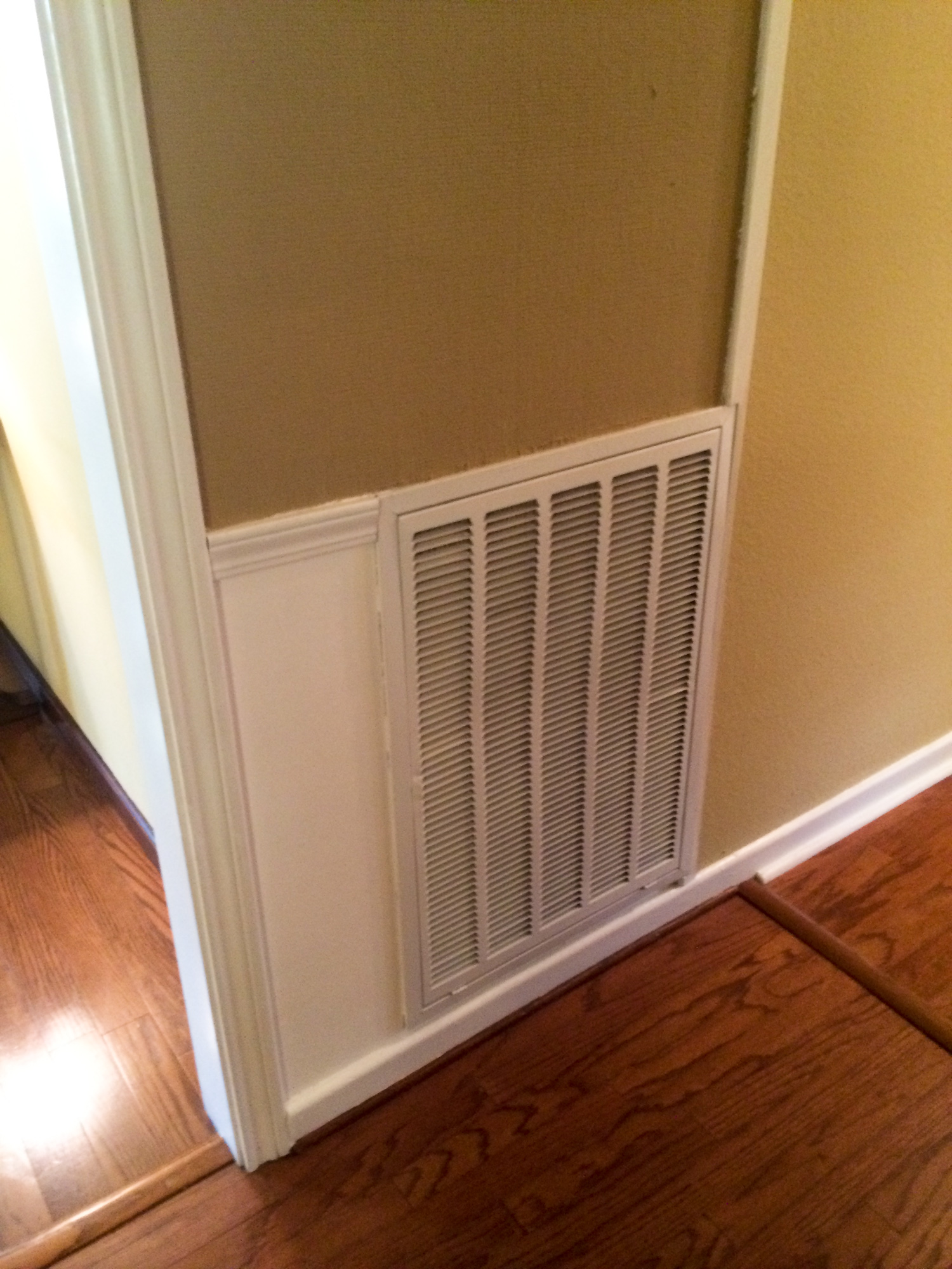 They replaced the old multi-paned French doors with these boring but I’m sure highly efficient numbers.The air conditioning grate that fell on my foot and caused my big toenail to fall off. Blech.