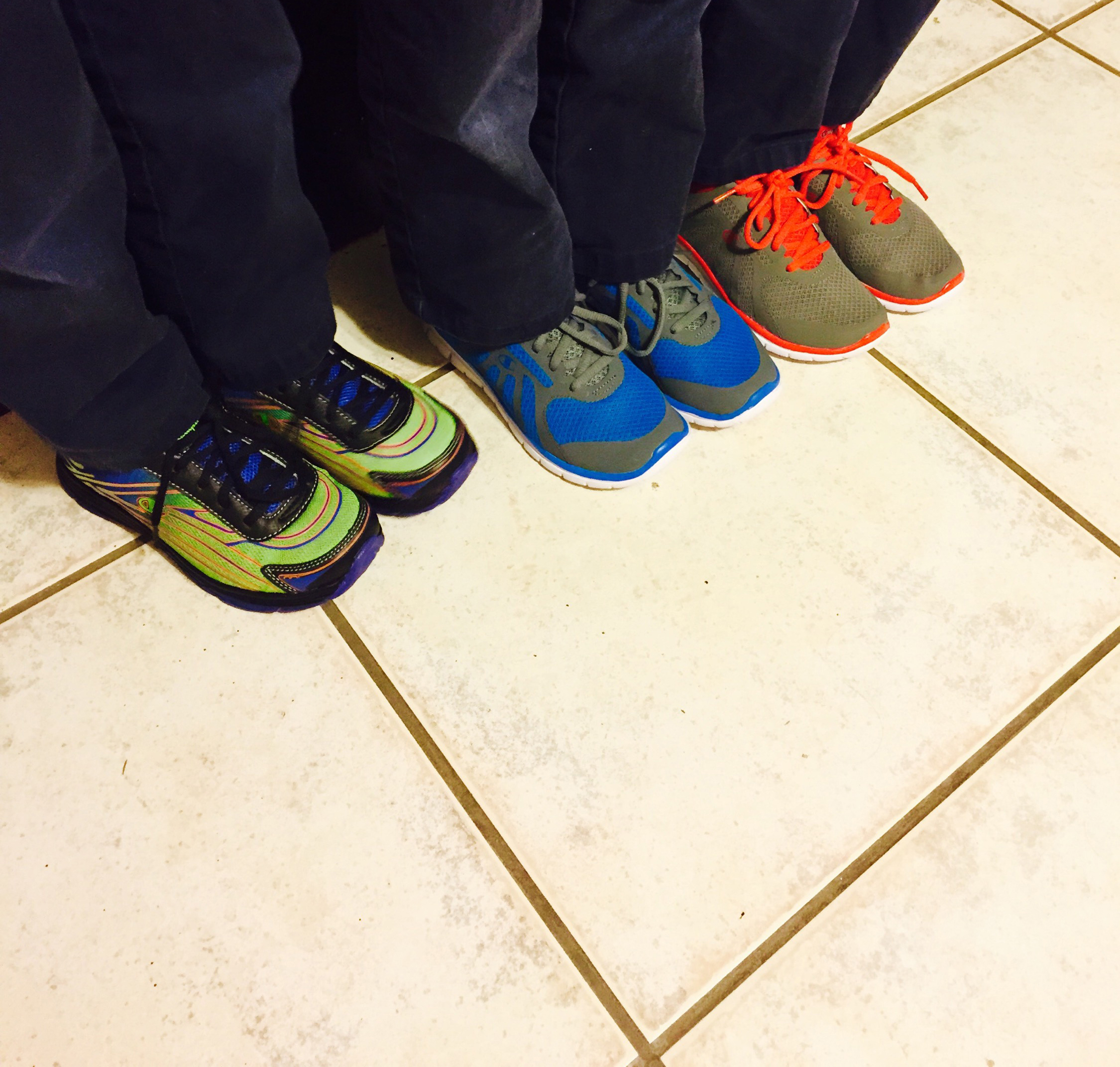 After I picked up the boys from school yesterday, I had to take them to the shoe store so Miles could get a new pair. I swear, I feel like I am always buying them shoes. And I’ve discovered it doesn’t matter if I buy them cheap sneakers or more expensive ones, they destroy them just as quickly. So off to Payless we went.