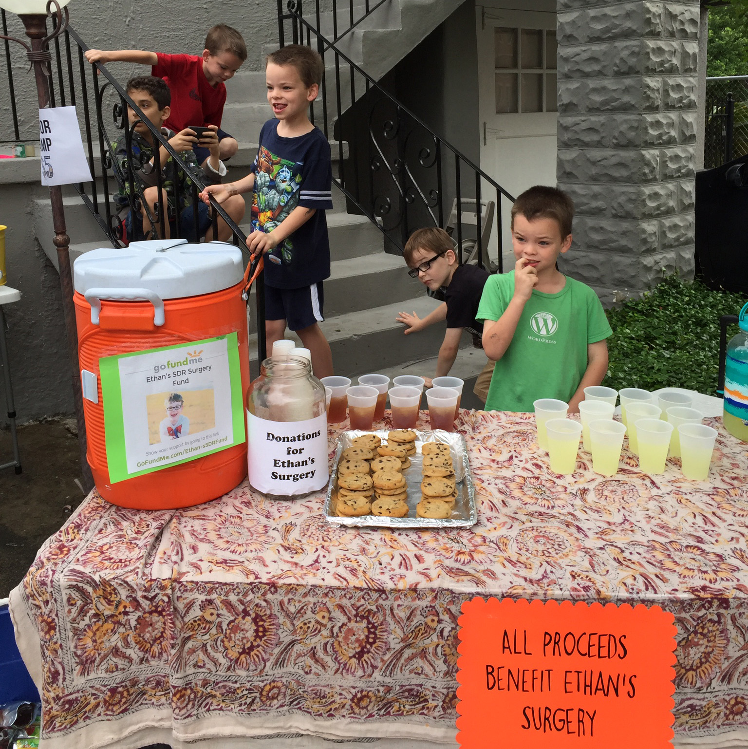 This past weekend, we took part in our big neighborhood garage sale, but more importantly, the boys and some of their pals had a lemonade stand to raise money for their friend Ethan’s surgery.