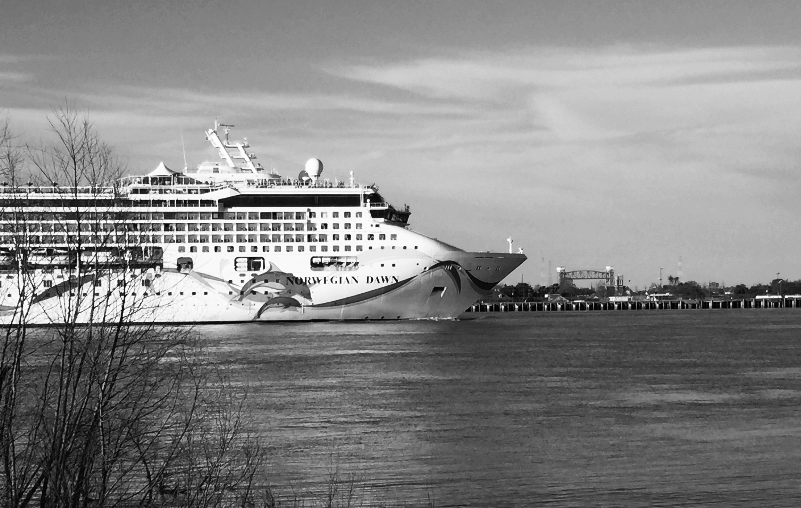 March 6 – On a walk with Ziggy, just happened to cross paths with the cruise ship we went on in November.