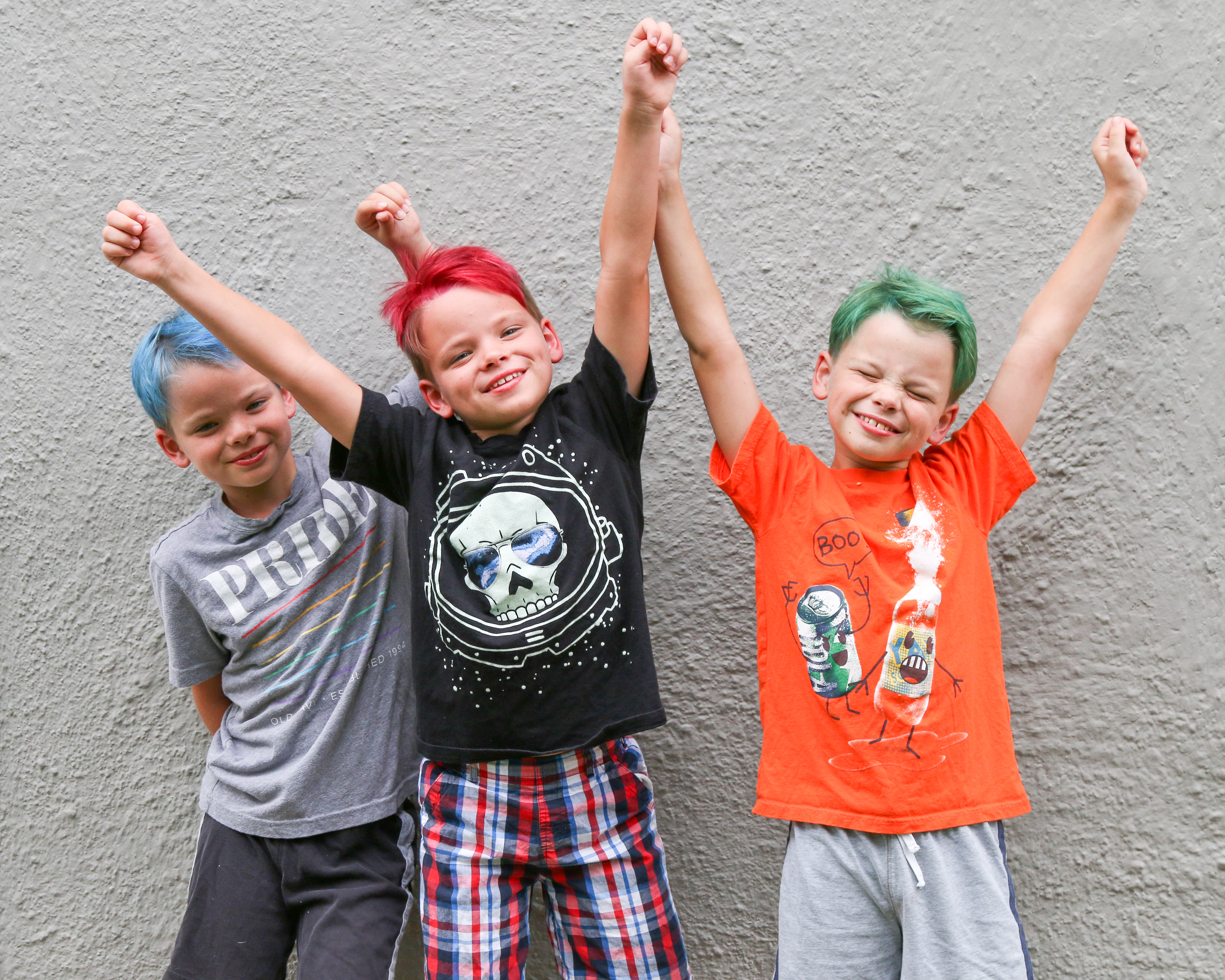 But you know, it’s just hair. It makes them happy. Who cares what color it is? And let’s be honest, it’s better for everyone involved if they’re easy to tell apart.