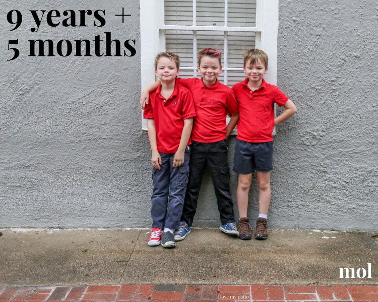 You can tell the school year is almost over. Miles is wearing two different shoes, Oliver has black pants instead of navy, and you can almost see Linus’s toes through his shoes. But by god, we are almost to the end of third grade!