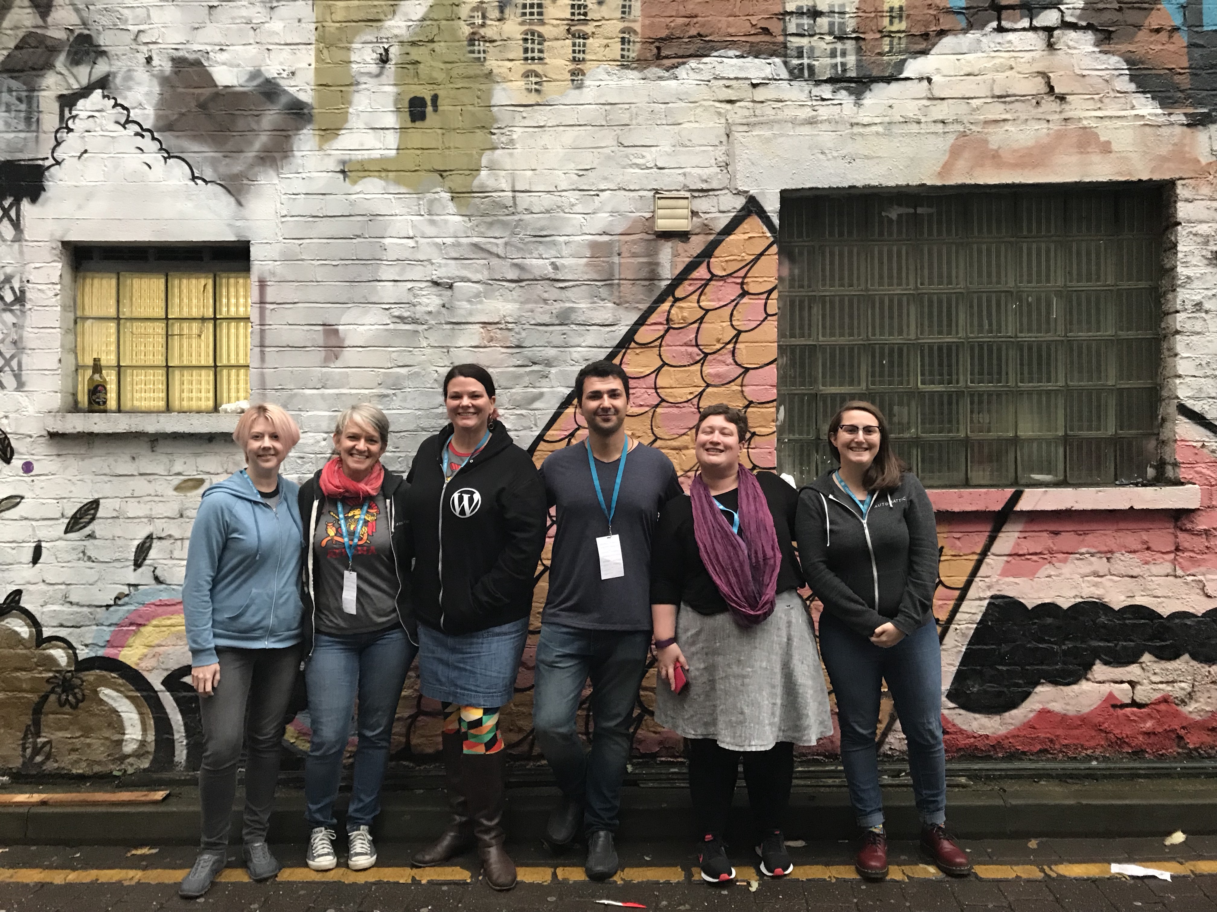 WordCamp Manchester! We got there pretty early so we could get our sponsor table set up. It was at the university there and the venue was so nice. It made me excited to help plan another WordCamp New Orleans. (Help plan, not plan.)