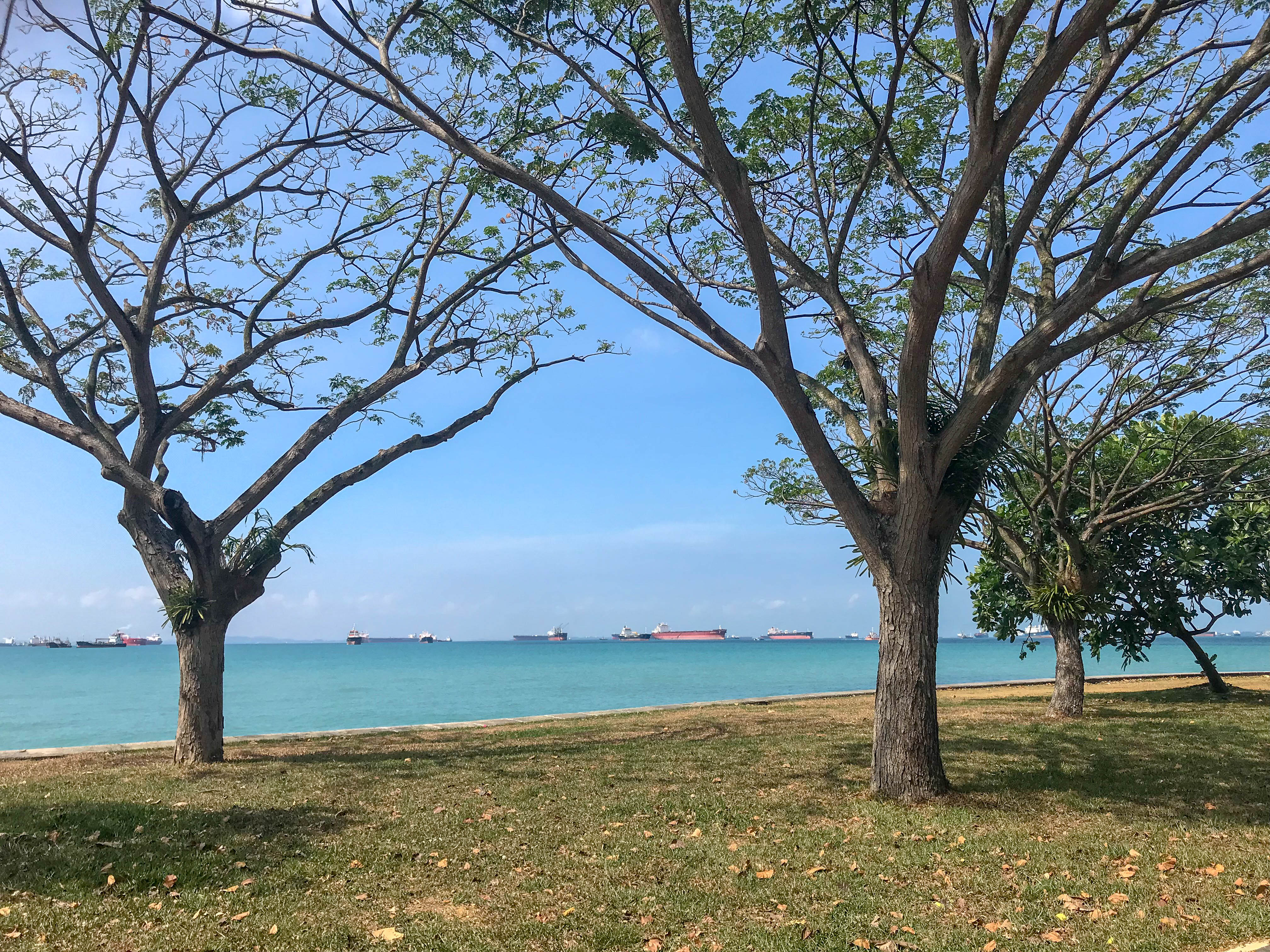I suppose I could have done this chronologically….earlier that day, first thing, we went to the beach. We just wanted to put our toes in water, not go swimming. It was pretty nice, even with the ships off on the horizon, reminding you this is a working waterway.