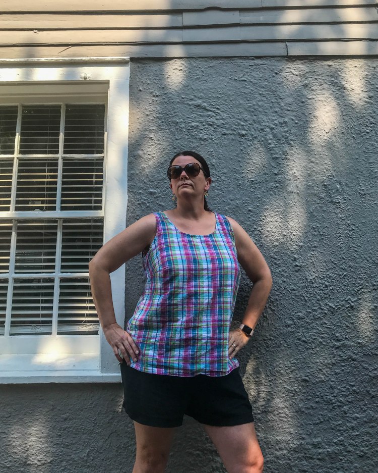 May 18: Uh oh. Got pulled over in my Seamwork Akita top and (not shown here) Patterns for Pirates Linen Loungers shorts.