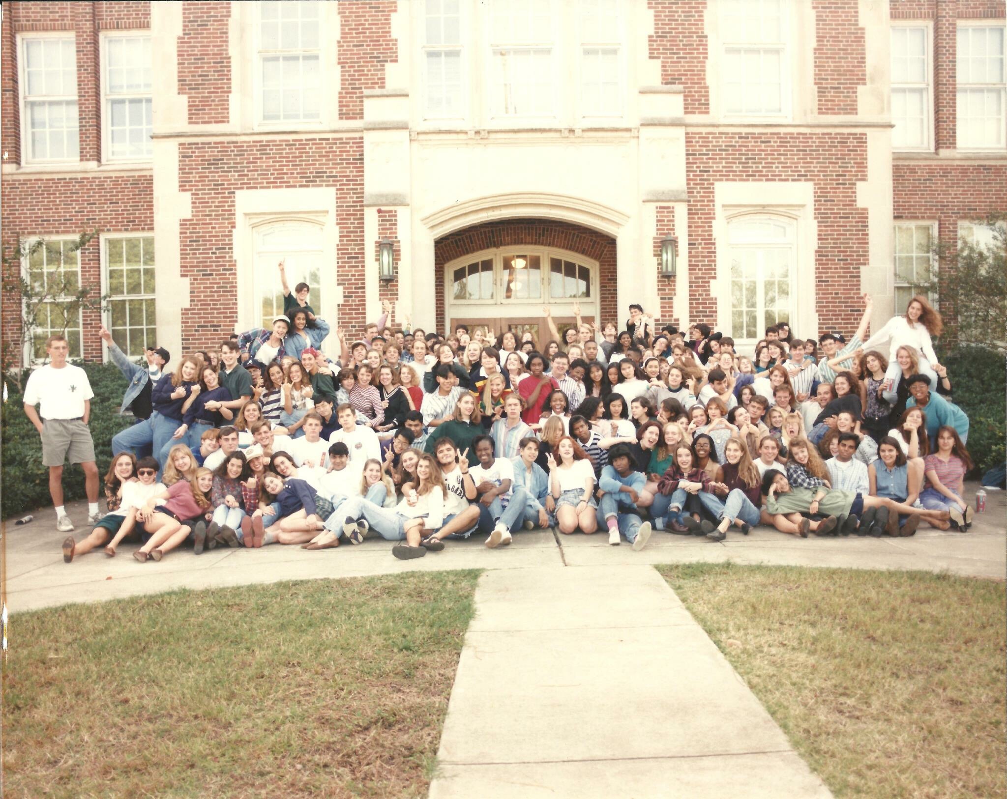 The next morning, we got up and went to meet everyone in front of the high school building for a picture with the rest of the class of ’93. Well, the others who showed up anyway. There were only about 30 people there, which was sad, but yay for at least those 30 people!