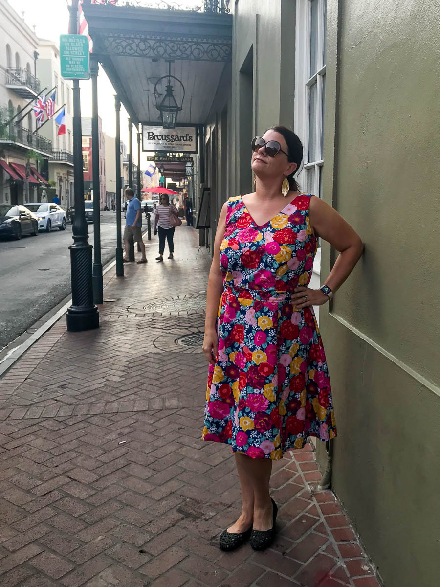 Anyway, I wore it to dinner with some friends last night, and got some pics in the French Quarter. Much better backdrop than my living room!