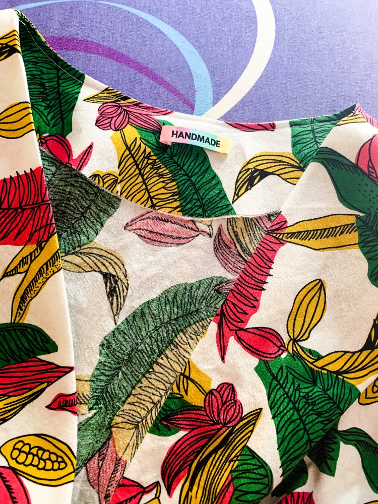 I decided to use the linen print I bought last summer at Mill End in Portland. I wasn’t sure if it would be flowy enough, but what the heck. If I didn’t use this fabric now, it would be another year before I could, since summer was technically ending soonish. (I mean, not really, this is Louisiana, summer is year-round, but I like to pretend it’s cool in the fall and wear seasonally appropriate clothes.)