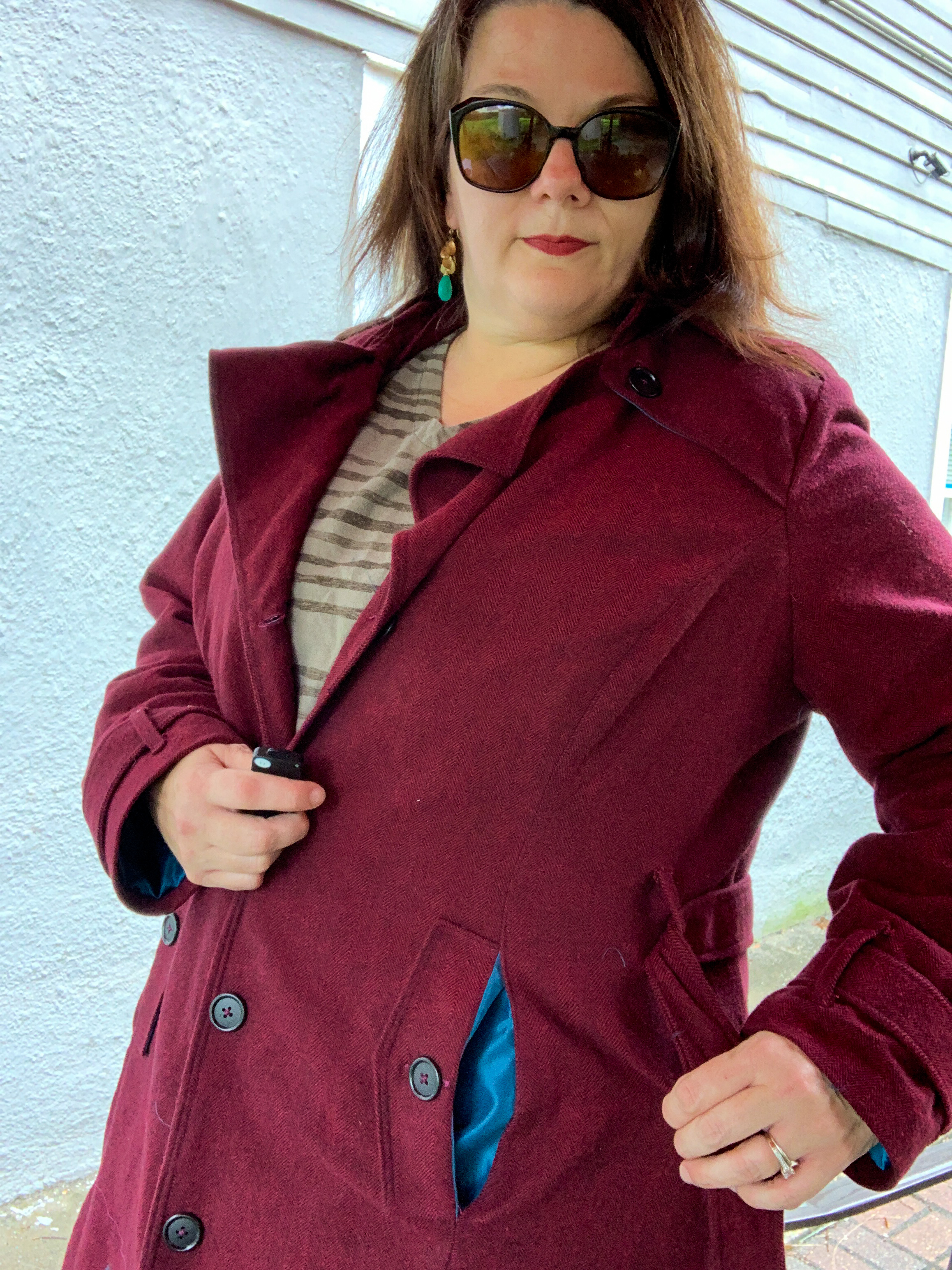 Anyway, since I knew I wasn’t going to spend my week off traveling (HA) I decided I needed to tackle a complicated sewing project. (I probably should have tackled cleaning my house, but that’s no fun.) Anyway, I’ve done a bathing suit, so not that. How about a coat? I’ve made the Pona jacket before, but it’s unlined. I mean a real winter(y I mean this is Louisiana after all) coat!