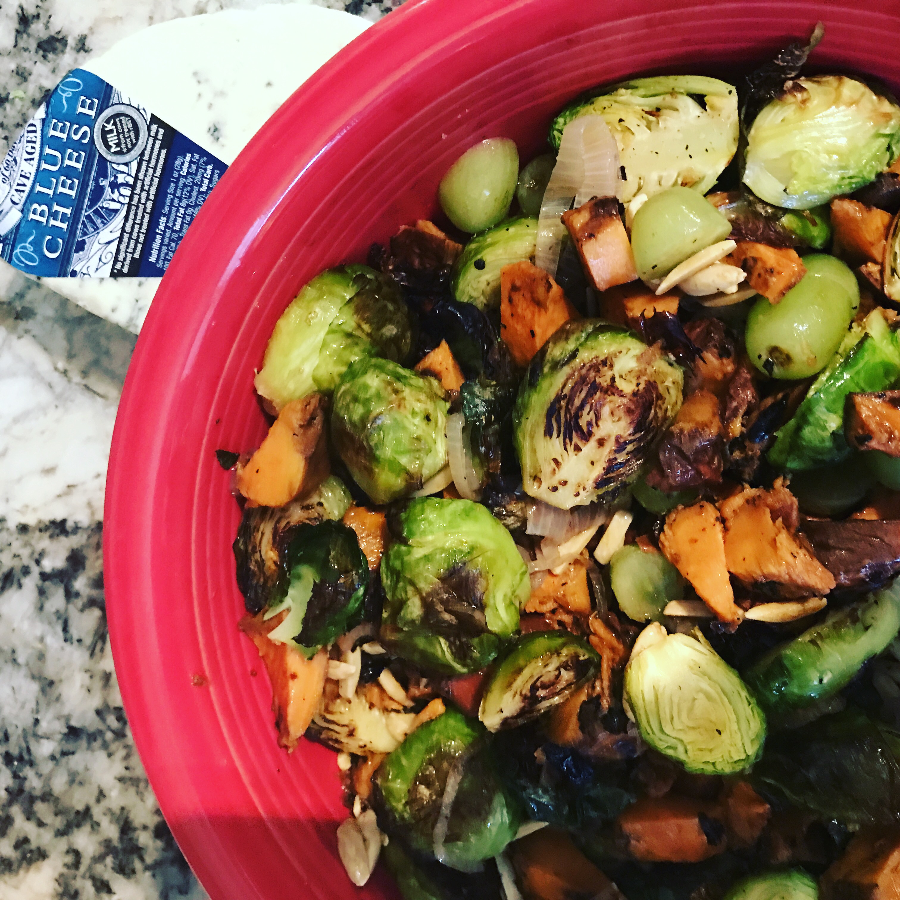 - Wait til everything is closer to room temp before you crumble the blue cheese over it. You don’t want it melting.