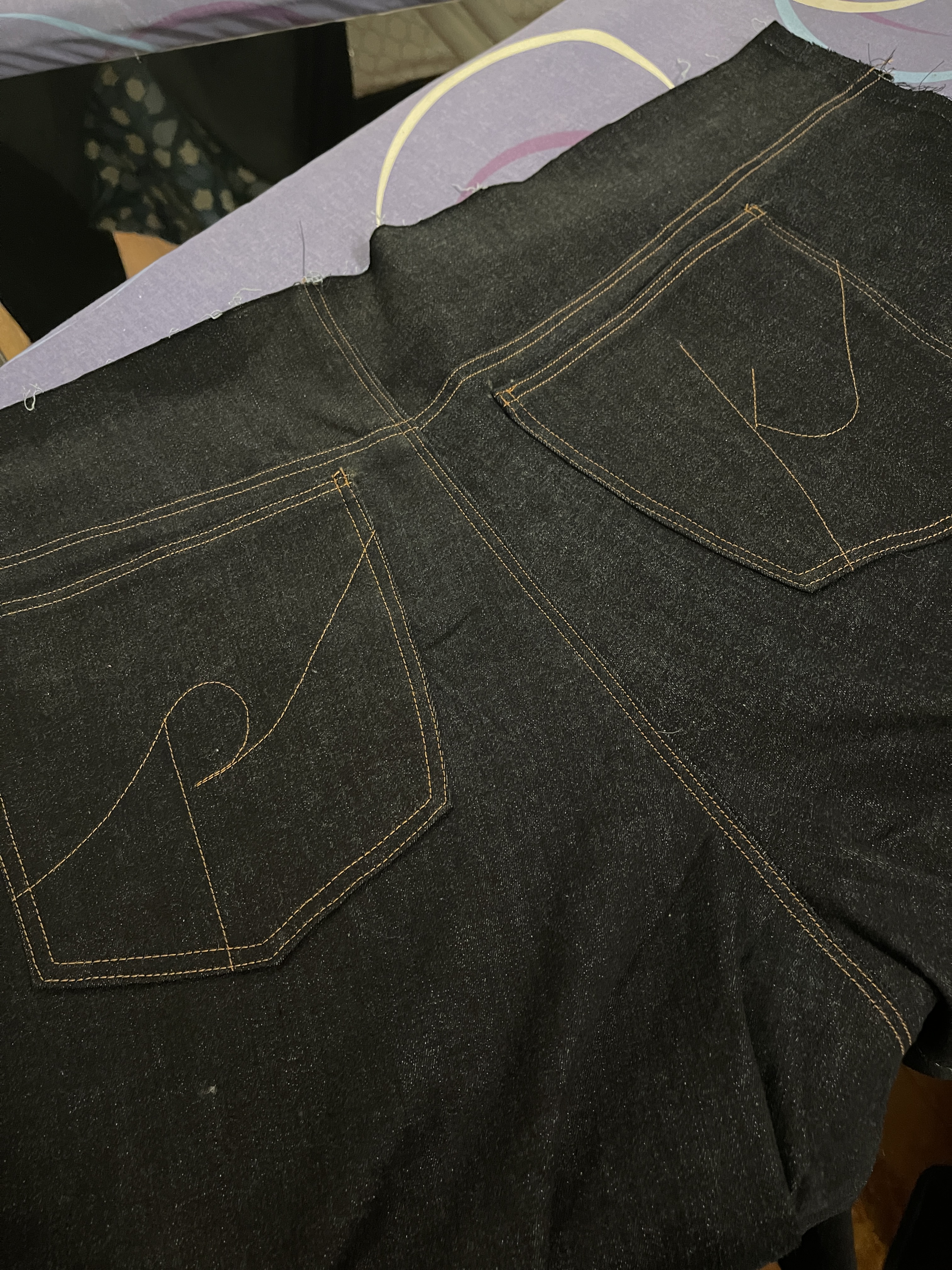 Bar tacks! Belt loops! Top stitching! Pretty pocket lining! Rivets!