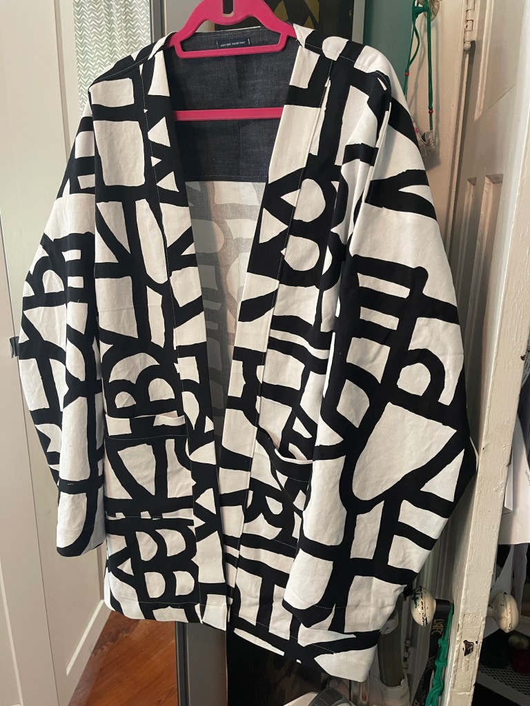 Also I made a jacket. It’s kind of a test version, because I wanted to make one out of denim, but now I’m not so sure. Only because it’s designed (I guess?) not to close all the way (I know I picked the right size) but it hangs open, which is fine, but probably I don’t need two. Or maybe I’ll make a shorter version. Who knows. Also I added an inch to the sleeves (I guess in my head my arms are freakishly long) but they ended up way too long so I guess I should hem them.