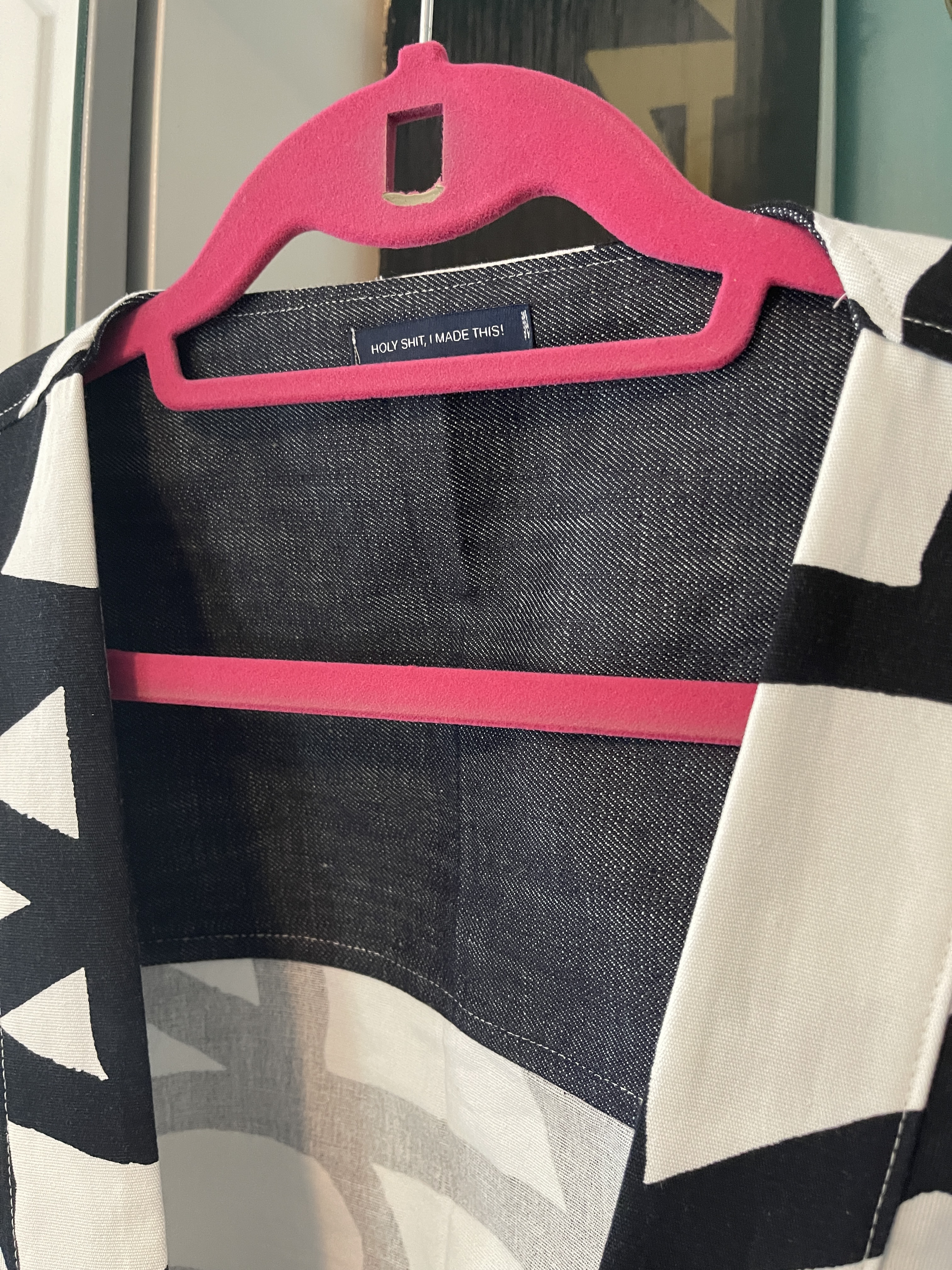 Also I made a jacket. It’s kind of a test version, because I wanted to make one out of denim, but now I’m not so sure. Only because it’s designed (I guess?) not to close all the way (I know I picked the right size) but it hangs open, which is fine, but probably I don’t need two. Or maybe I’ll make a shorter version. Who knows. Also I added an inch to the sleeves (I guess in my head my arms are freakishly long) but they ended up way too long so I guess I should hem them.