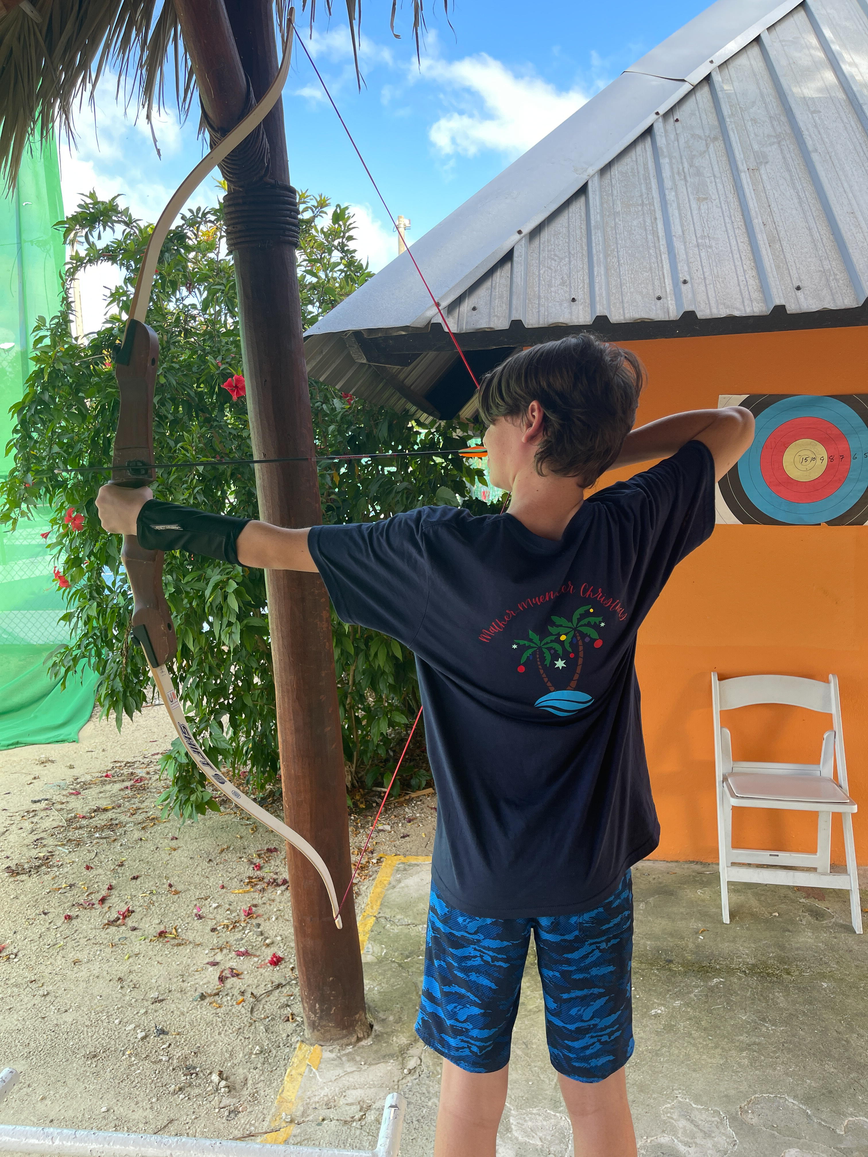 We also did some activities, like I snorkeled for the first time (was good, saw a fish), and the second time (was in rough water, but over a coral reef, was beautiful, but had to be towed back to the boat by the captain), found out I was really good at archery (okay maybe a slight exaggeration), but really, mostly it was relaxing and reading.