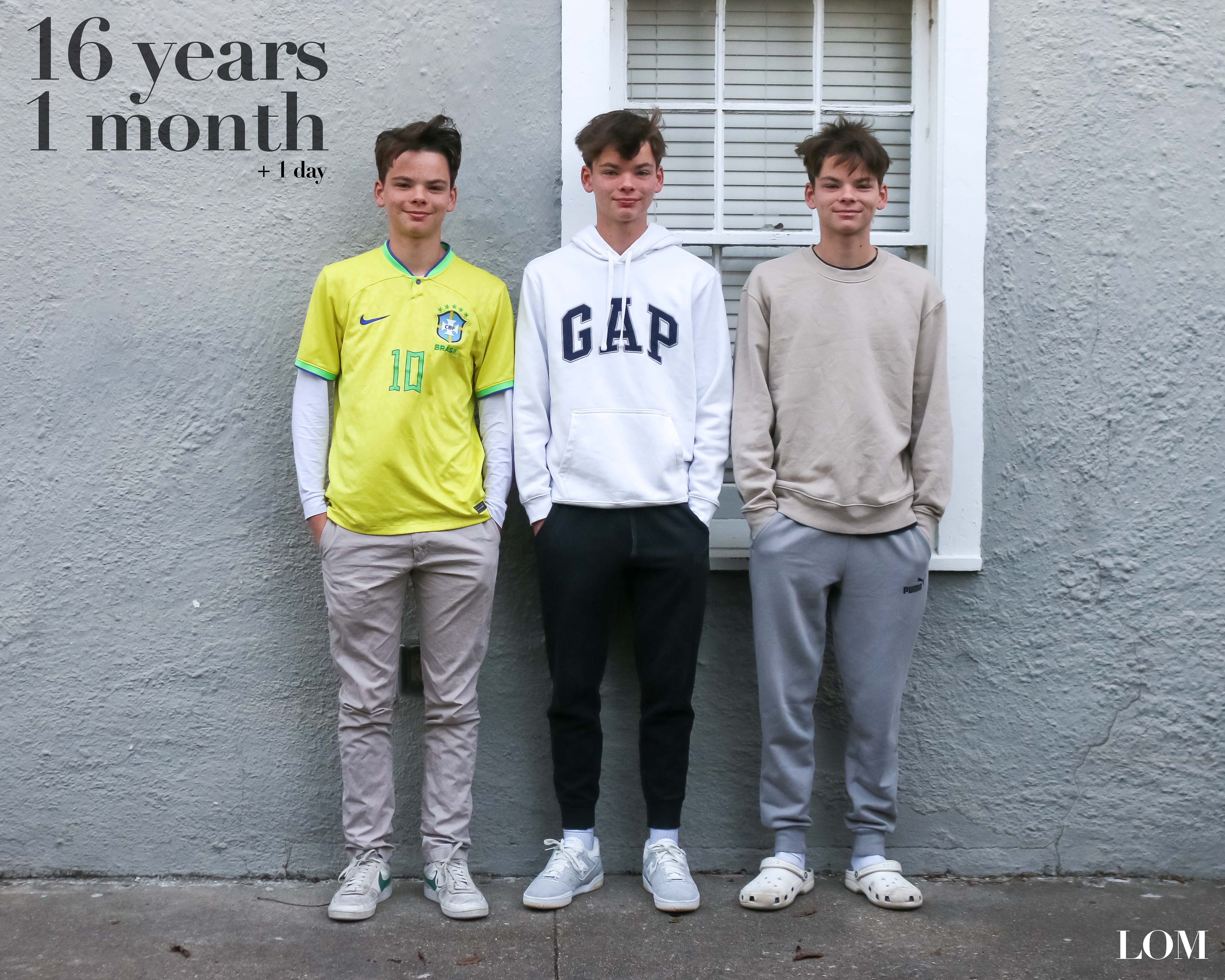 It kills me to put that +1 day there, but there was no point during daylight when all three boys were at home and awake so I let them talk me into doing it today rather than inside, last night, when they were all exhausted from their soccer game. But at least it was a conscious decision and not an “oops I forgot.”