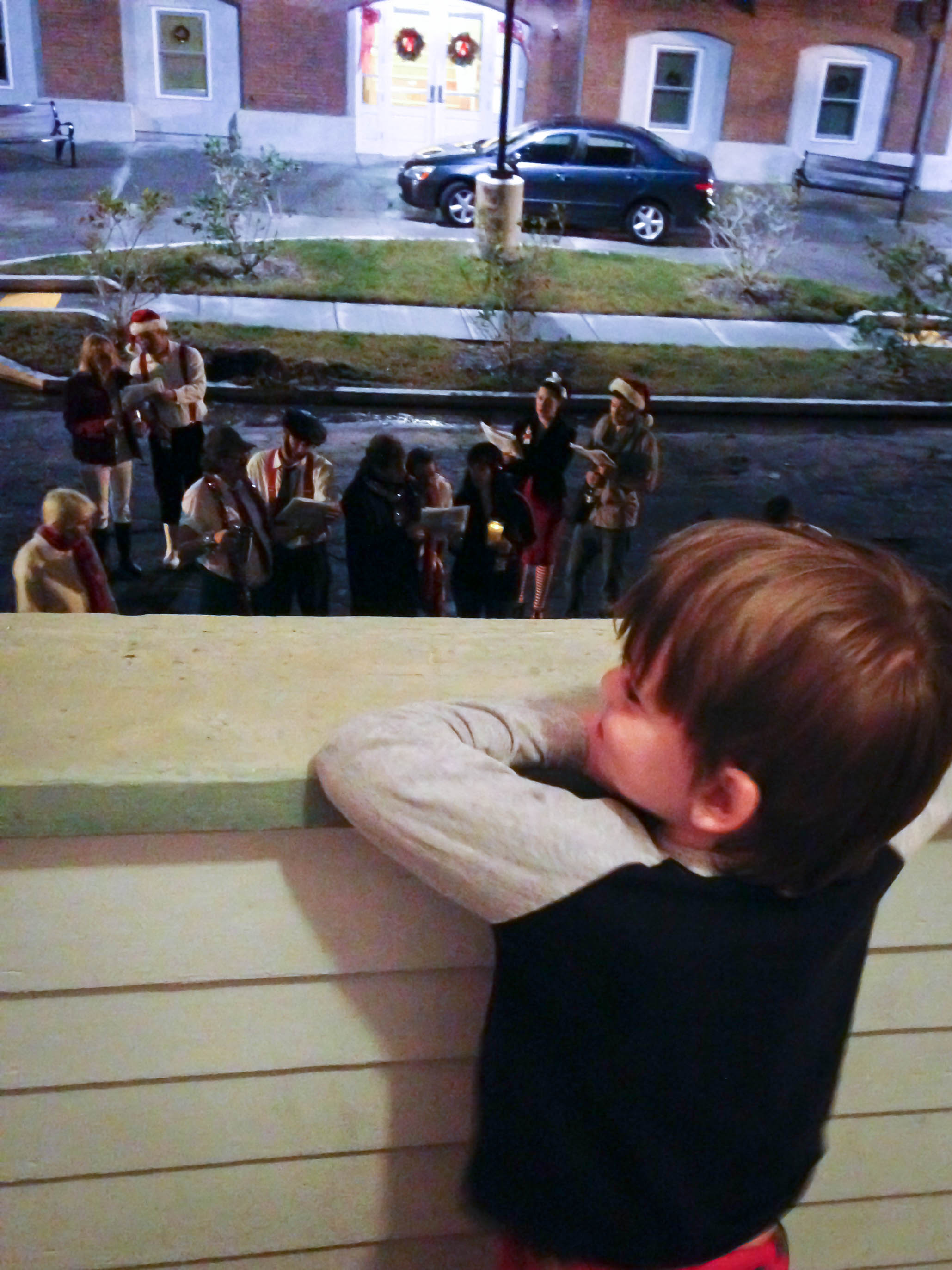 12/16/12 One of the reasons I love living in our neighborhood – carolers! Even though it was probably 70 degrees outside. Miles especially seemed enchanted by the whole experience. Share this:Share on TumblrLike Loading...