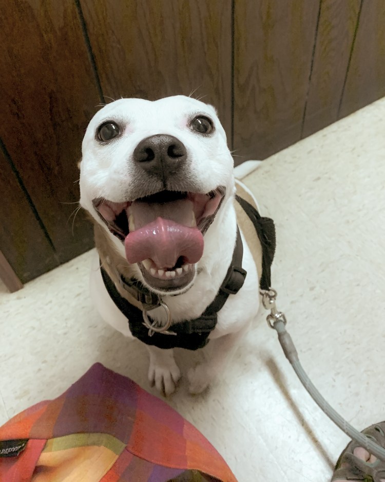 He looks happy here, but rest assured he is most definitely not. We were at the vet. Time for shots! Poor buddy.