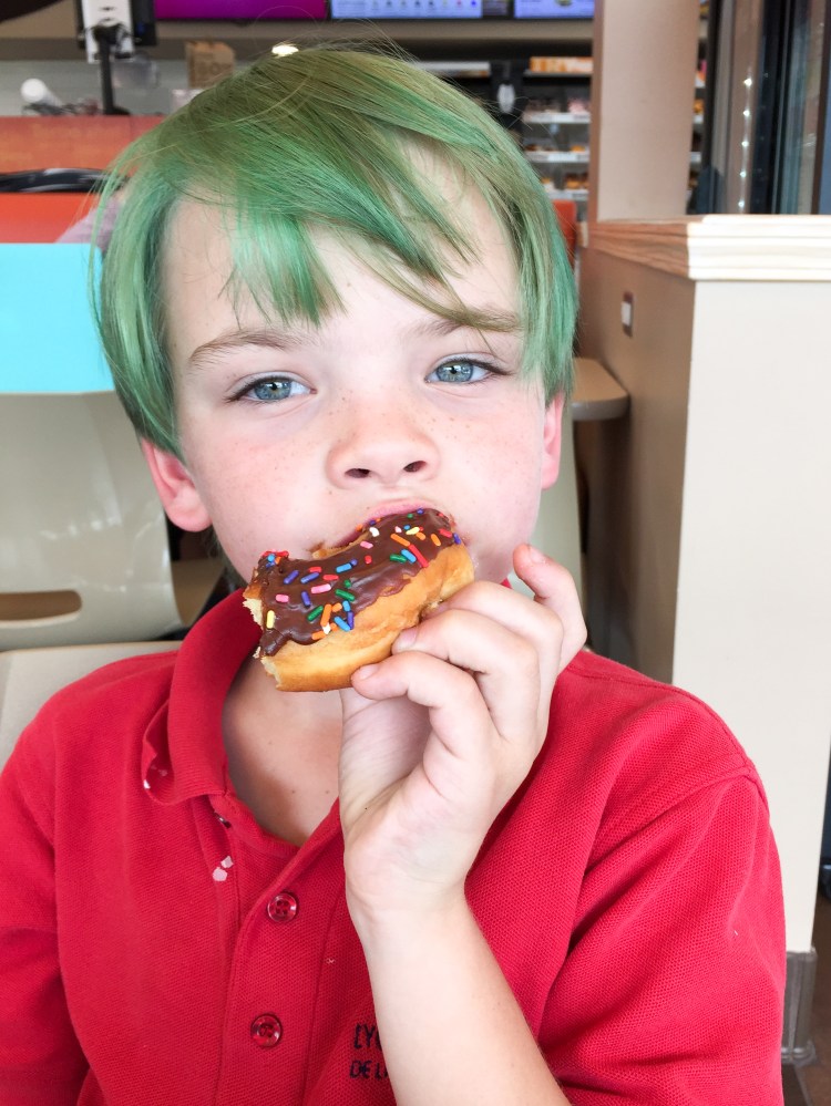 In non-me related things, I continued to allow my children to really express themselves through their hair. I mean, it’s not hurting anyone. It’s temporary (ish, I mean, I did have to bleach their hair to get it this vibrant, but hair does grow) and if you could have seen how happy Linus was after we made his green, well, any doubts would have been wiped away.