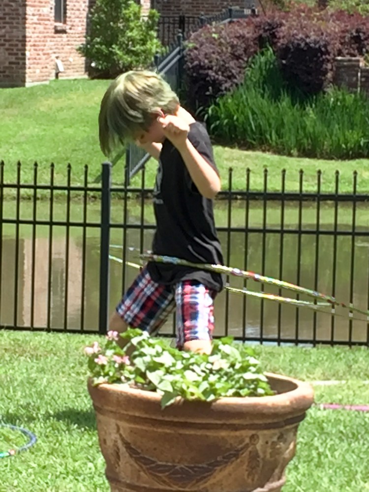 We had a nice weekend in Baton Rouge. My mom and Larry hadn’t seen all three of them in a while. (Miles and I had seen them after his second day of filming.) There was hula-hooping and playing on a playground and going out to dinner for pizza. Sunday I was able to sneak off for a bit to buy some new workout clothes which was nice. We also made some more homemade cupcakes – lemon cupcakes with strawberry buttercream this time, but I don’t know if we should be making a habit of Sunday cupcakes. Well, we still have to make chocolate, so this isn’t the right time to be making a decision.