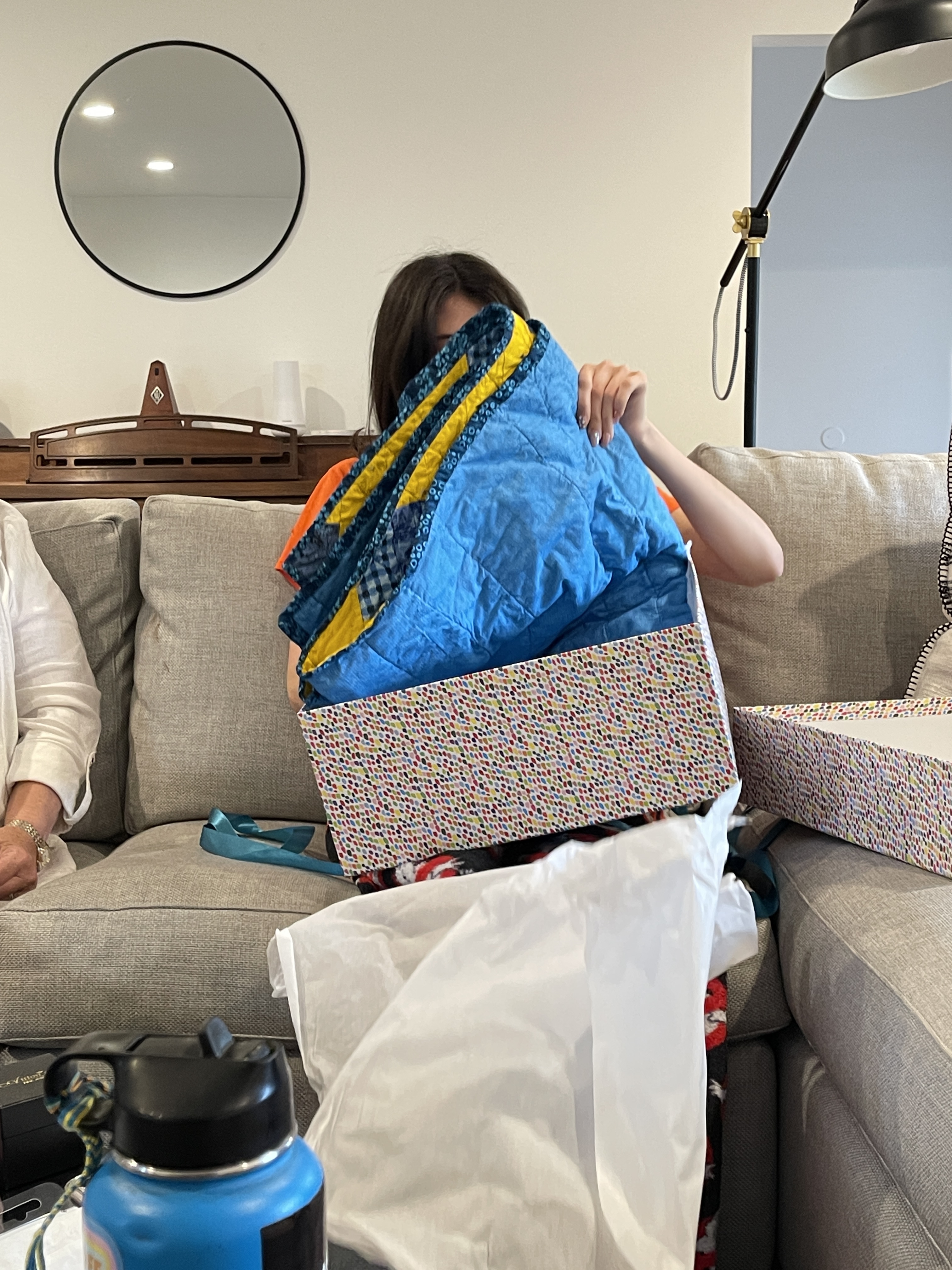 I was really excited to give Ellie her graduation gift, a quilt I made for her in UCLA colors. I hope it keeps her warm and cozy while she’s at college. Sniff, sniff. She was just a tiny baby, I can’t believe she’s off to college.