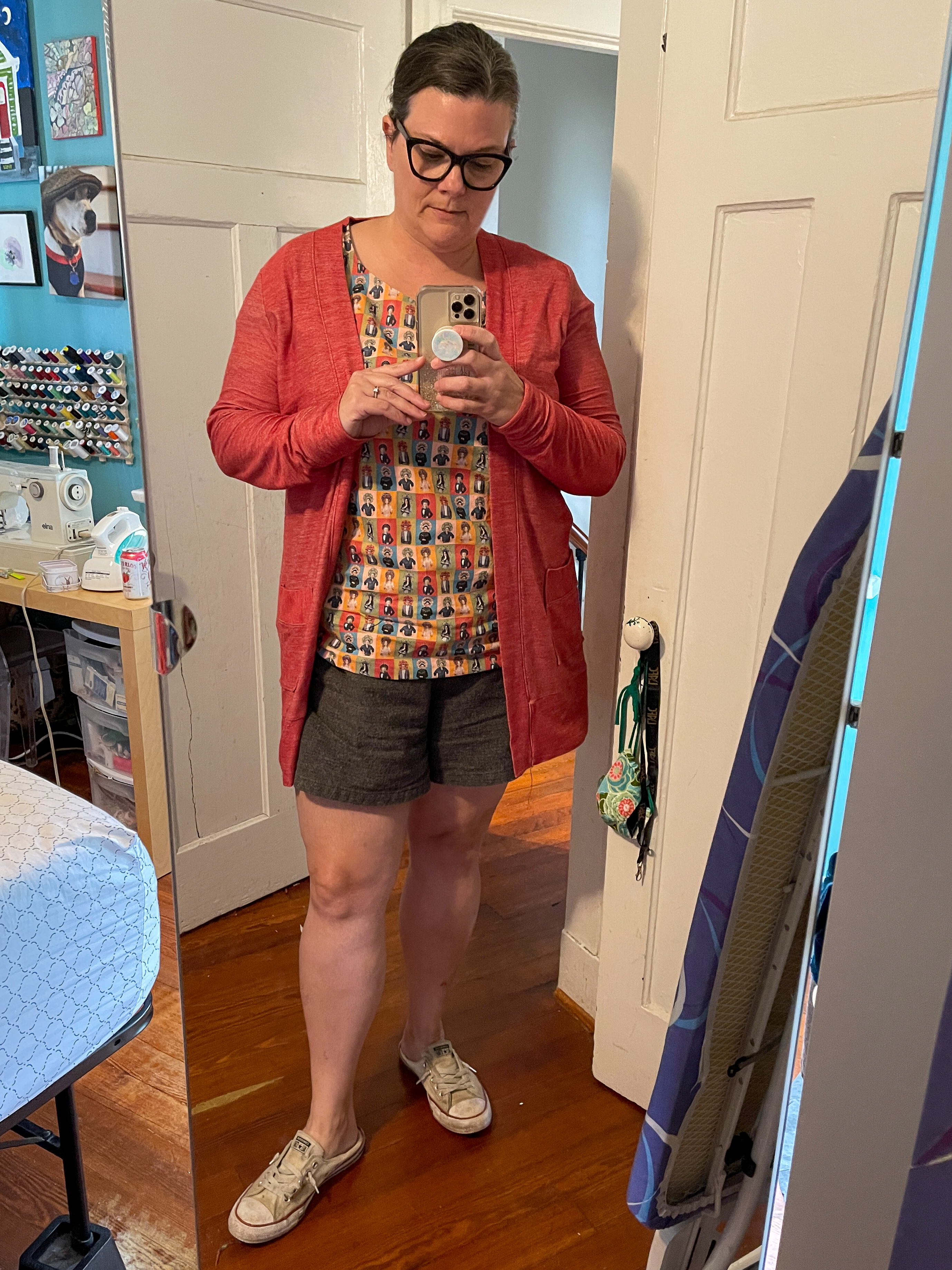 I have had this pattern printed out for a while, but wanted to wait for the weather to cool off before I started it. I’d even ordered the fabric for it, some denim from Mood. But then I had a couple of thoughts about using denim: