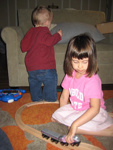 Went back to their house, went to Trader Joe’s (why why why don’t they have them here? Hmmph.) and Evan cooked dinner. Linus likes slurping spaghetti noodles. There was much playing going on.