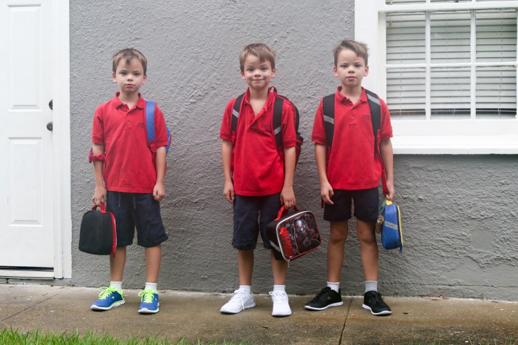 Anyway, yes. Today is the boys’ first day of kindergarten. We went to the school on Monday to get their class assignments, and I’m very happy with their teachers and who is in their classes. (Is it wrong that I was more concerned about the friends in their classes than their teachers?) Oliver has Linus’s teacher from last year, and Miles’s teacher’s aid from last year. Miles and Linus have new male teachers, but Linus’s aid is Miles’s from last year. Confusing enough? Millie is now in Oliver’s class, and the boys’ twin BFFs are, like last year, one in Oliver’s class, and the other in Linus’s. Anyway.