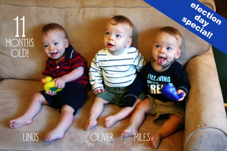 I did take this yesterday, but I didn’t post it because I took it on my new iPhone and while I liked the smiles, I wasn’t happy with the photo quality (it was still sorta darkish outside when I took it so it’s grainy because of low light) so I was going to try to take another picture with my big camera later, but we had a birthday party and I forgot my camera and we were late to the birthday party anyway and who wants a monthly picture outside of Laser Tag?