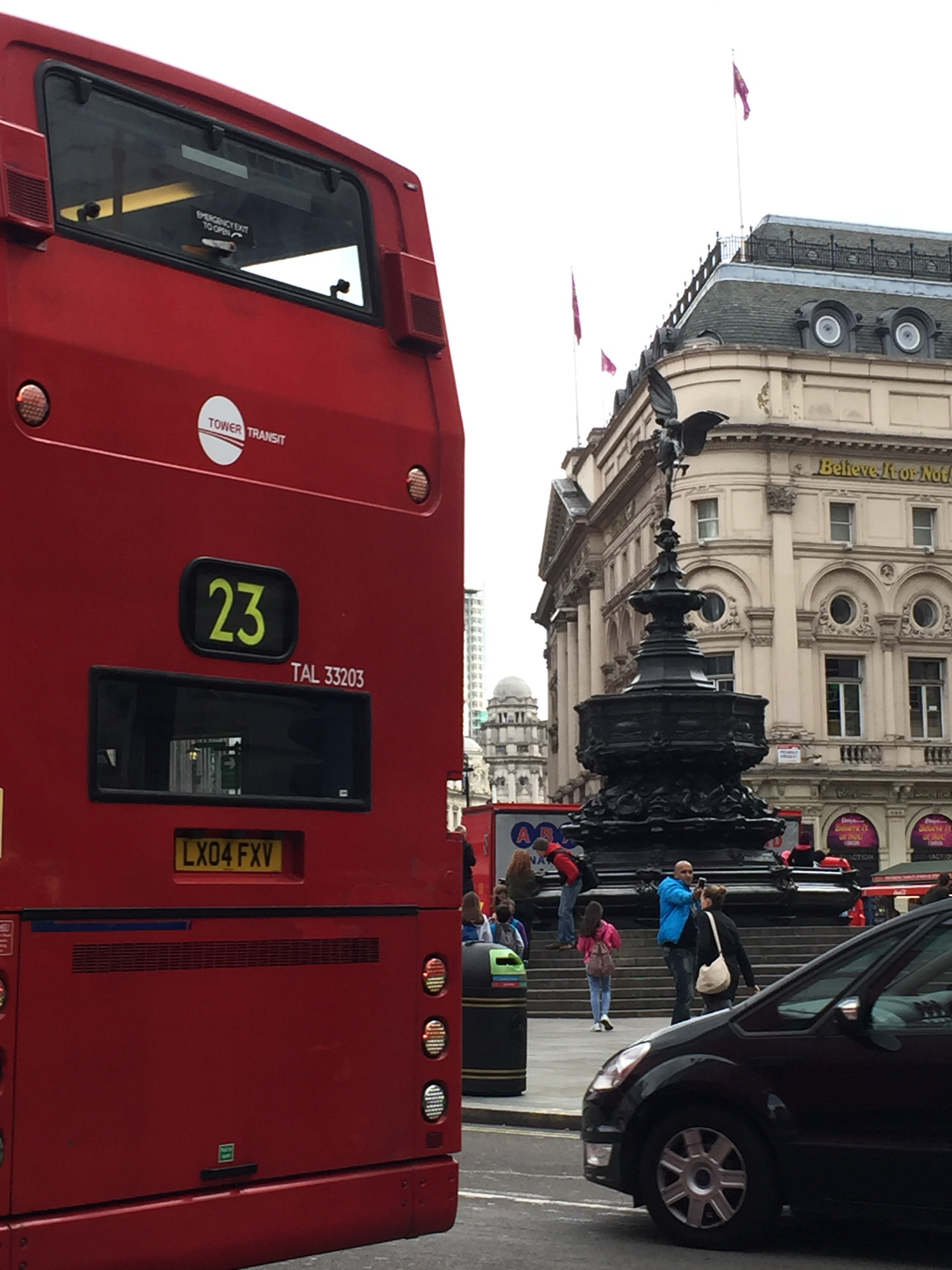 So. I had time to do things, so I took a bus to Piccadilly Circus to go to some shops (a giant Waterstones as well as Fortnum & Mason to pick up tea for a friend.) Got a few books and the tea, then got on a bus to go back to the airbnb.